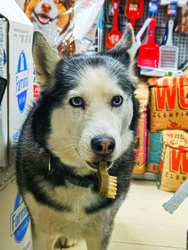 Drugi haski sa našeg grba je Maat. Ona je prelepa ženkica koja pleni svojim izgledom i karakterom. Kada smo otvarali radnju bila je štene, a sada je dama u srednjim godinama koja se i dalje ponaša kao štene.