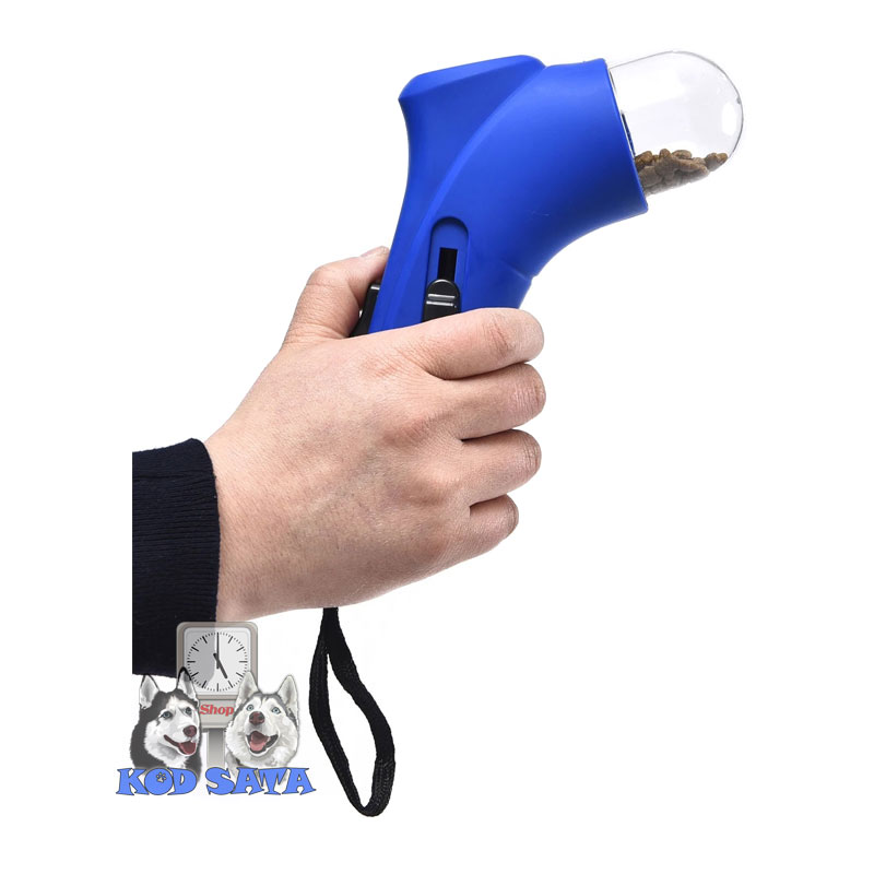 * Jednostavnim pritiskom na dugme - granula ili keks se “ispaljuju” u pravci u kom je uperiš, a do najveće udaljenosti od 3 metra.