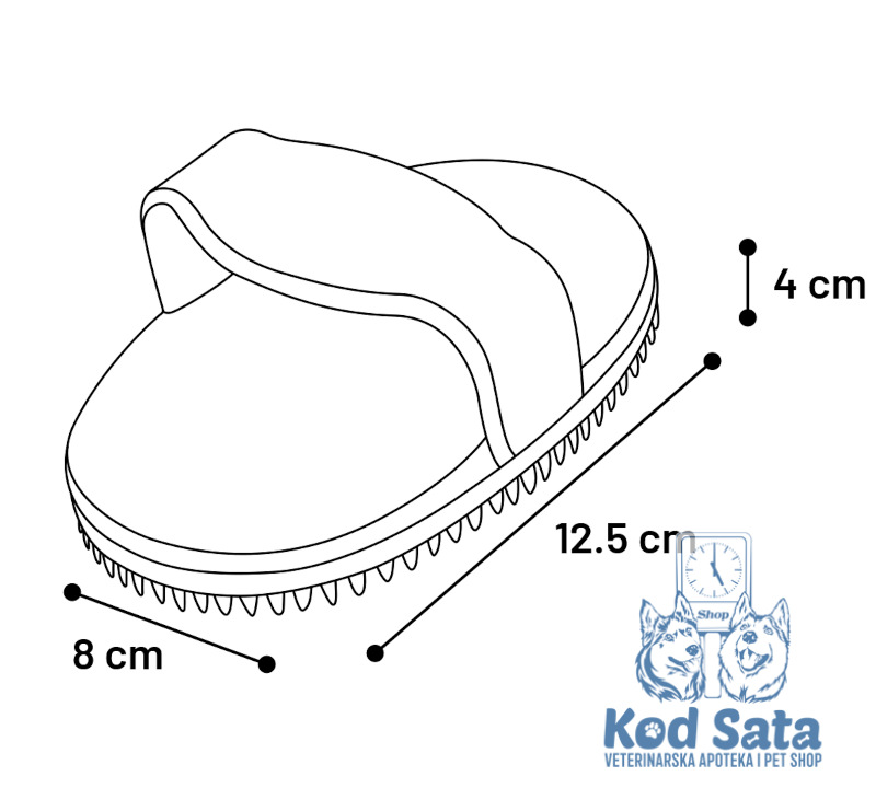 Flamingo Četka Buda je praktična gumena četka za negu dlake pasa, izrađena od mekog gumenog materijala koji prija koži i ne oštećuje dlaku. Oblikovana je tako da udobno leži u ruci, a njena struktura omogućava efikasno uklanjanje opale dlake, prašine i prljavštine, uz istovremeno nežnu masažu kože.