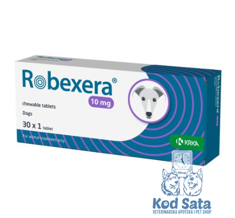 Robexera 10mg je veterinarski lek namenjen za ublažavanje bola i smanjenje upale kod pasa. Sadrži aktivnu supstancu robenakoksib, selektivni nesteroidni antiinflamatorni lek (NSAID) razvijen posebno za bezbednu i efikasnu primenu kod pasa.