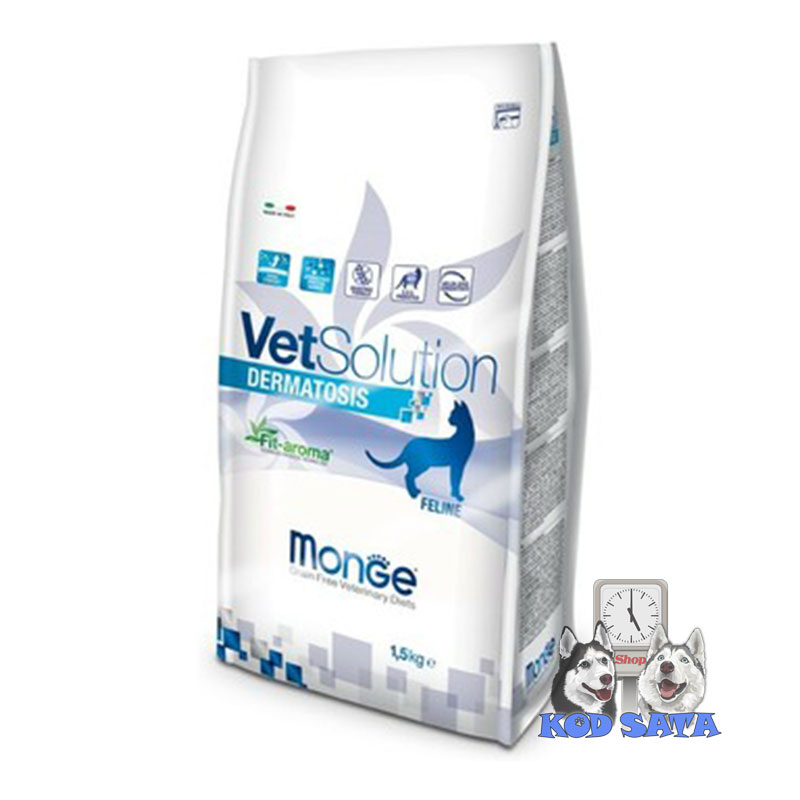 • Monge VetSolution Dermatosis je kompletna dijetalna hrana za mačke formulisana da podrži oporavak kože u slučaju dermatoze i prekomernog gubitka dlake.
