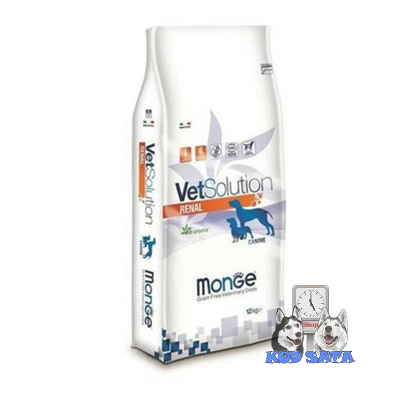• Monge VetSolution Renal je kompletna dijetalna hrana za pse koja je formulisana za podršku bubrežne funkcije u slučaju hronične ili privremene bubrežne insuficijencije.